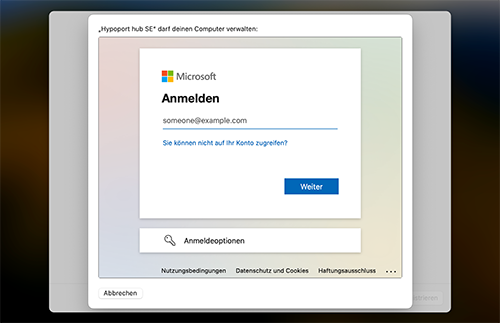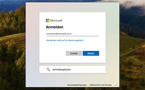 Bei der ersten von insgesamt zwei Microsoft-Anmeldeseiten meldest du dich mit deiner Unternehmens-E-Mail-Adresse inkl. Passwort ein.