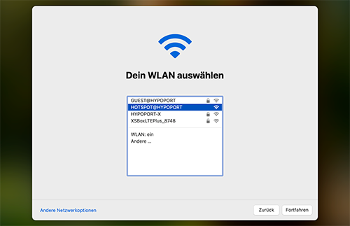Achtung: Befindest du dich an einem Hypoport Standort, wähle bitte das HOTSPOT@HYPOPORT WLAN.